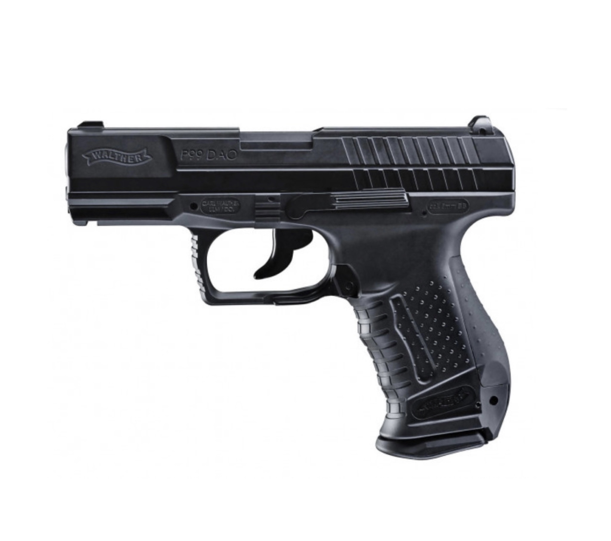 Airsoftová pištoľ Walther P99 DAO na bombičky CO2, Blow Back, kovový záver, max. energia = 2 J, kapacita zásobníka 15 BB, biele kontrastné body na muške i cieľniku, celková dĺžka 182 mm, hmotnosť 592 g, systém DA, odporúčaná hmotnosť BB 0,25-0,30 g