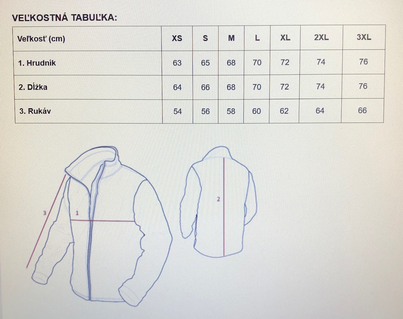 VEĽKOSTI: XS, S, M, L, XL, 2XL, 3XL