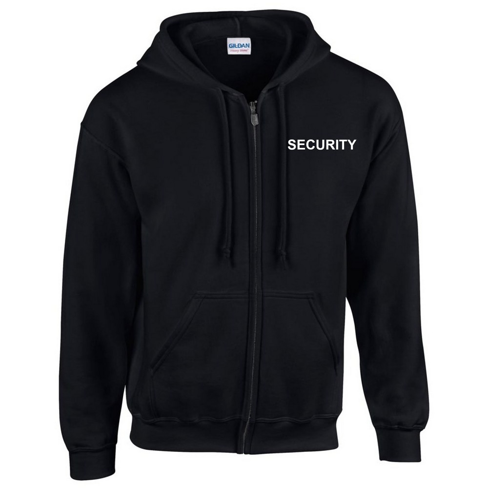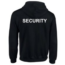 Mikina SECURITY so zipsom a kapucňou – čierna s bielou potlačou