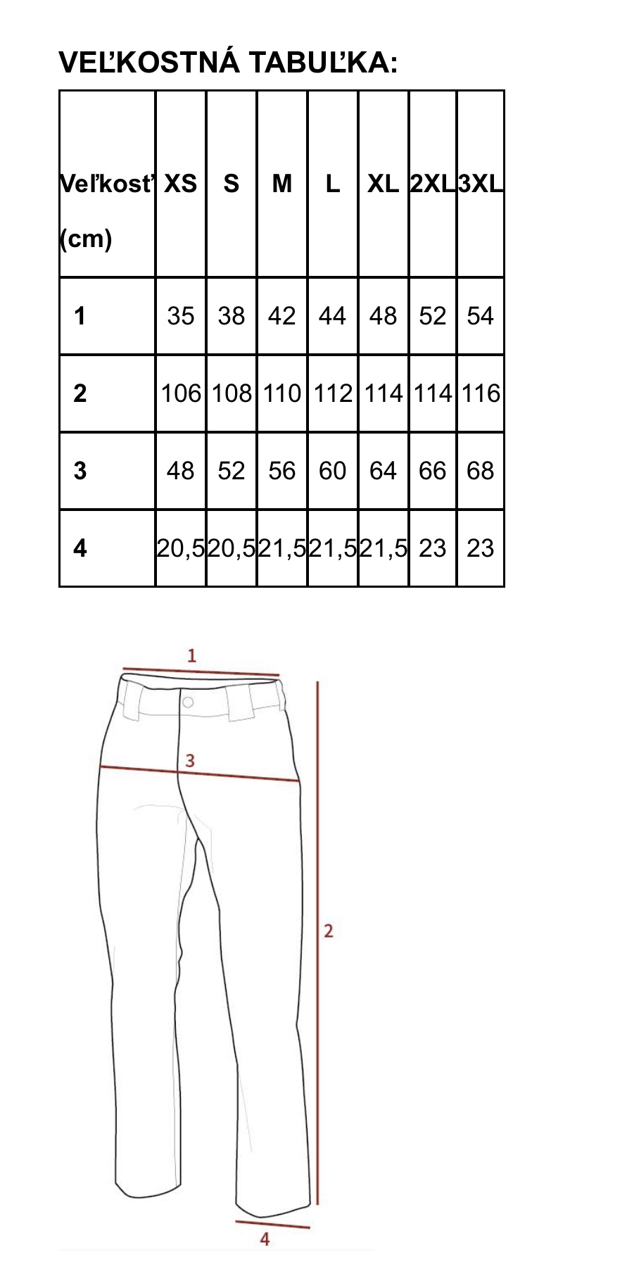 VEĽKOSTI: s, M, L, XL, 2XL, 3XL (veľkostná tabuľka – foto)