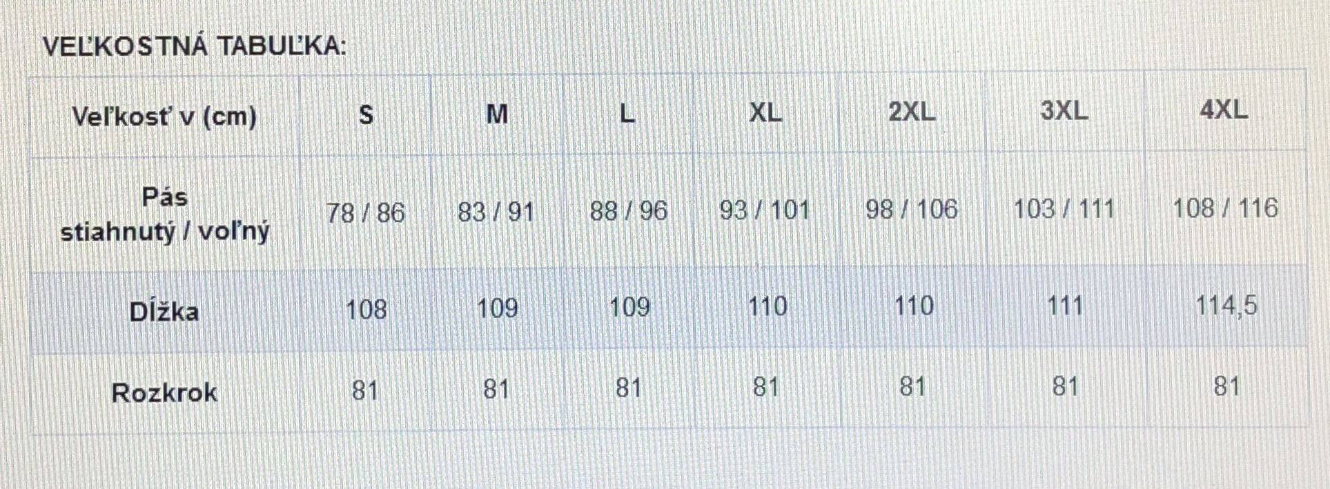 VEĽKOSTI: S, M, L, XL, 2XL, 3XL, 4XL