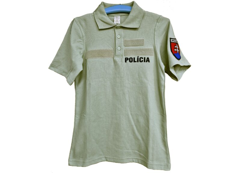 Polokošeľa POLÍCIA s krátkym rukávom zelenej farby. Dodávame bez hodnosti, čoz a menovky, len pripravené našité suché zipsy.