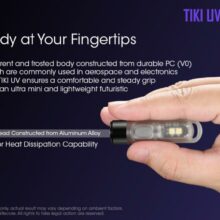 – svietidlo na kľúče s UV a bielym rozptylovým svetlom. LED Luminus SST-10-UV s maximálnym výkonom 1000 mW. – Vstavaná nabijacia 130 mAh Li-ion batéria umožňuje maximálnu dobu prevádzky až do 2 hodín.- Integrovaný inteligentný nabíjací obvod pre Li-ion batériu so vstavaným micro USB-C konektorom.- Jeden multifunkčný prepínač na ovládanie všetkých funkcií.