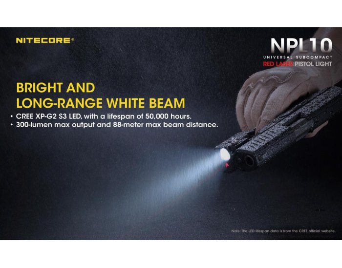 Svietidlo na pištoľ s laserom NITECORE NPL10, 300lm – čierne