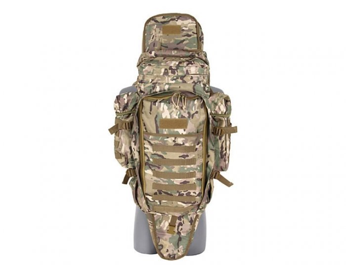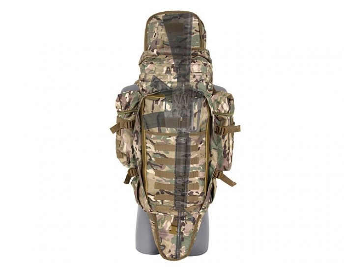 – v zadnej časti ruksaku je veľký polstrovaný úložný priestor na umiestnenie dlhej zbrane, doplnený polstrovaným krytom, ktorý po jeho nasadení na pažbu zbrane umožňuje prenos aj dlhých zbraní, ako sú odstreľovacie pušky a pod.,