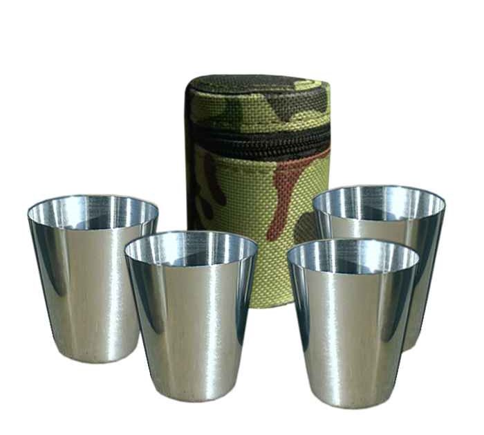 4 nerezové poháriky o objeme cca 2,5 cl v nylonovom maskáčovom puzdre