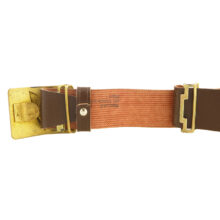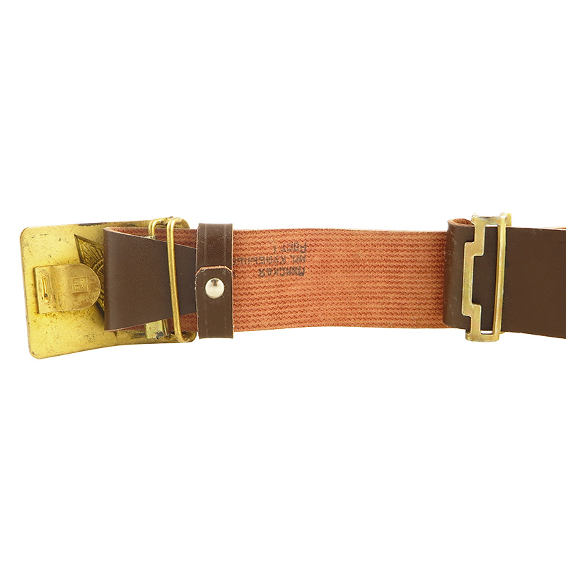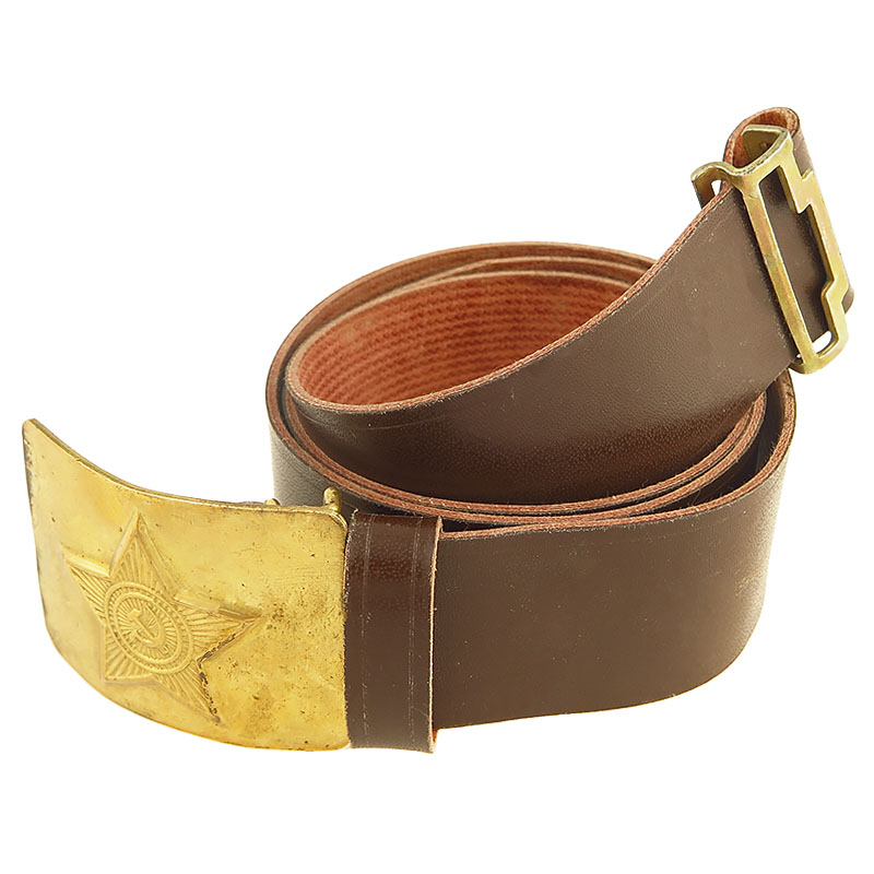 Ruský vojenský opasok s originálnou prackou zlatej farby. Pracka môže vykazovať známky používania, čo pridáva na autentickosti opasku. Opasok neobsahuje dierky, veľkosť je teda možné nastaviť podľa vlastnej potreby. Celková dĺžka opasku je cca 110cm a jeho šírka je približne 4,5cm.