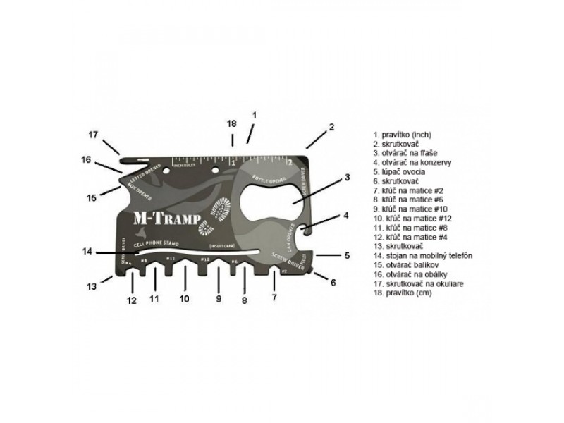 – multifunkčná karta na prežitie vyrobená z nerezovej ocele,