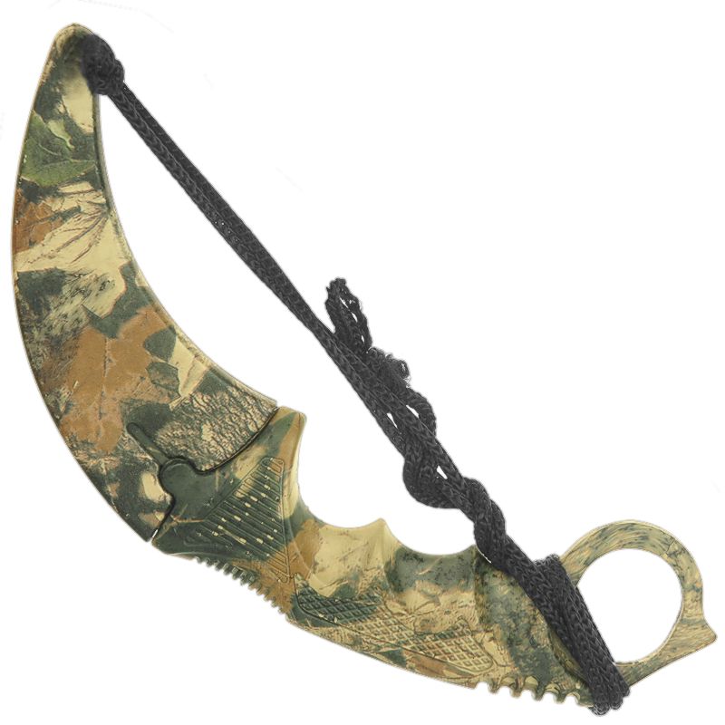Karambit nôž s celoplošnou potlačou 3D Realtree je praktickým nožom do lesa ale aj na poličku do zbierky karambitov. Súčasťou balenia je aj praktické puzdro na čepeľ z tvrdeného plastu so šnúrkou pre lepšie prenášanie karambitu. Ergonomická rukoväť karambitu zlepšuje celkový dojem ako aj precíznosť pri manipulácii s nožom. Kamuflážový motív na nožíku zasa bude vyzerať skvele počas pobytu v prostredí lesa či hôr.