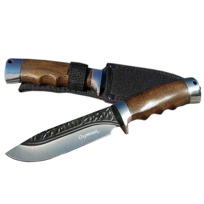 Kvalitný, štýlový a dizajnovo veľmi pekný nôž, ktorého čepeľ je z časti ozdobená tepaným čiernym profilovaným obrazcom. Vhodný ako lovecký nôž do prírody, pre hubárov, rybárov a pod., ale aj na bežnú potrebu. Anatomicky tvarovaná rukoväť pre lepšie uchytenie noža. Dodáva sa spolu s puzdrom, ktoré je možné pripevniť na opasok.