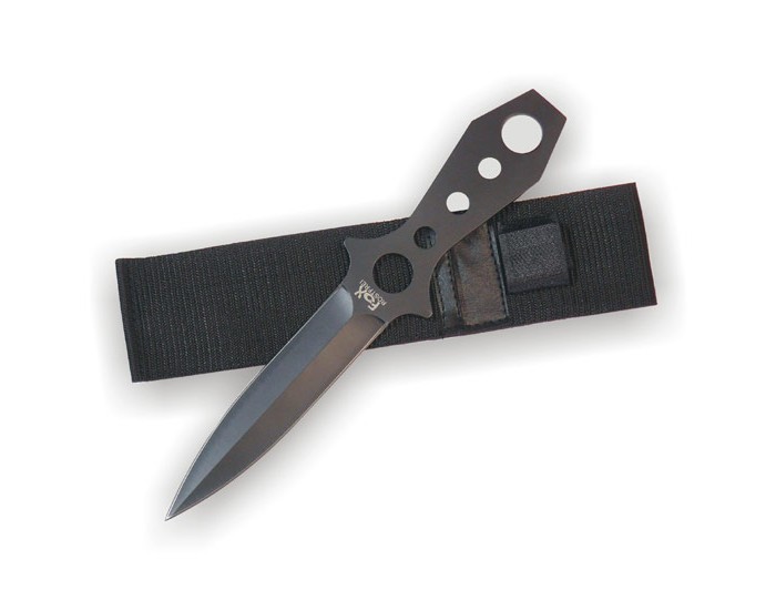 – kvalitný vrhací nôž, vyvážený pomocou otvorov v rukoväti