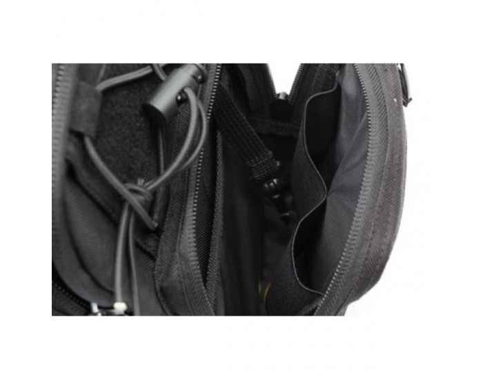 – malé vonkajšie Molle puzdro s vreckami a elastickými gumkami je uzatvárateľné na zips, oddelí a usporiada všetky náležitosti ako peňaženka, telefón, kľúče, vreckový nôž, obrúsky, perá a mnoho ďalšieho