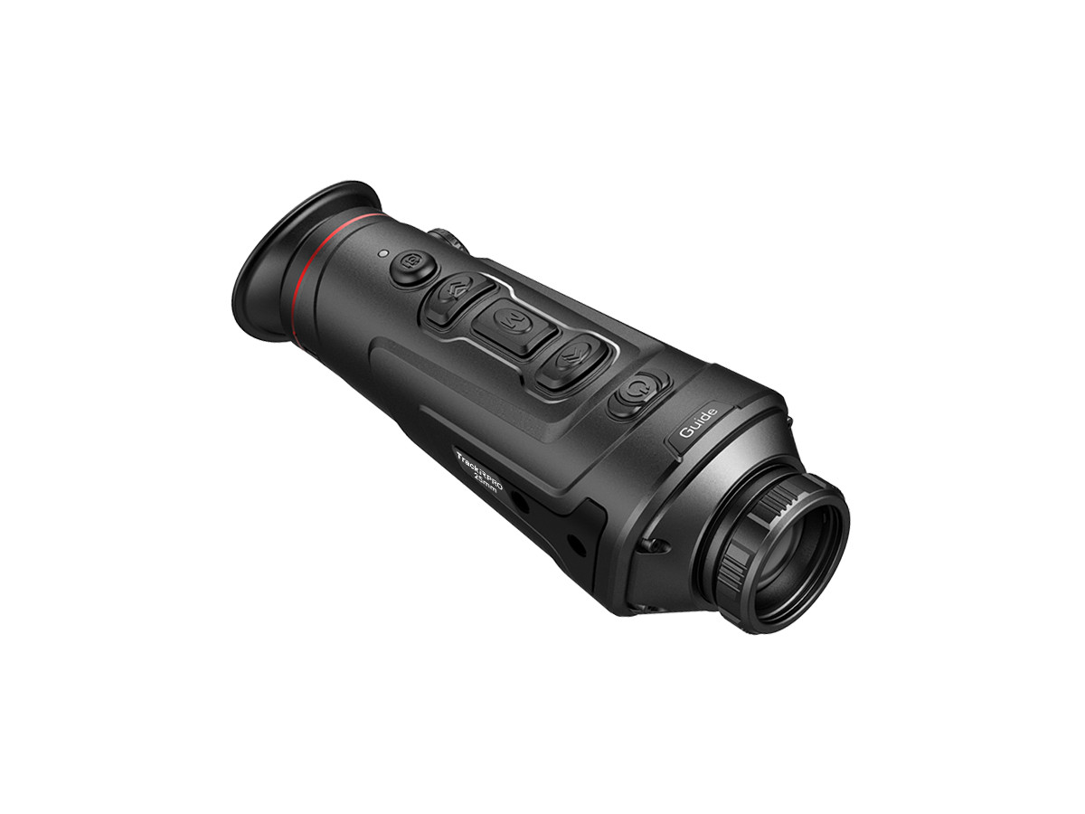 Séria termovíznych monokulárov Guide TrackIR Pro je určená pre profesionálnych lovcov vyžadujúcich tie najvyššie parametre. Detektor s rozlišením až 640×480 px a obrovský interný LCOS displej s HD rozlíšením 1280 x 960 a veľkosťou 0,4″ (navodzuje dojem ako u sledovania 22″ obrazovky zo vzdialenosti 1 metra) umožňuje vidieť každý detail. Vysoká snímková frekvencia 50 Hz zabezpečuje ostré a plynulé zobrazovanie dynamických scén. Plynulé osemnásobné zväčšenie zabezpečuje bezproblémové udržanie cieľa v zornom poli. Vstavaný stadiametrický diaľkomer uľahčuje určenie vzdialenosti. 5 farebných a 3 scénické režimy umožňujú pozorovanie vo všetkých podmienkach. Funkcia obraz v obraze a sledovanie hotspotov pre ešte lepšiu detekciu cieľov. Séria Track IR Pro má automatickú kalibráciu a tiché tlačidlá, aby sa minimalizoval generovaný zvuk. Indikátor zapnutia je možné vypnúť. Funkcia Stand-by umožní spustiť zariadenie za menej ako 1 sekundu. Fotenie a natáčanie videa je samozrejmosťou, rovnako tak aj prenos súborov či zdielanie obrazu cez wifi. Odolný voči pádom z 1 metra / krytie IP 66.