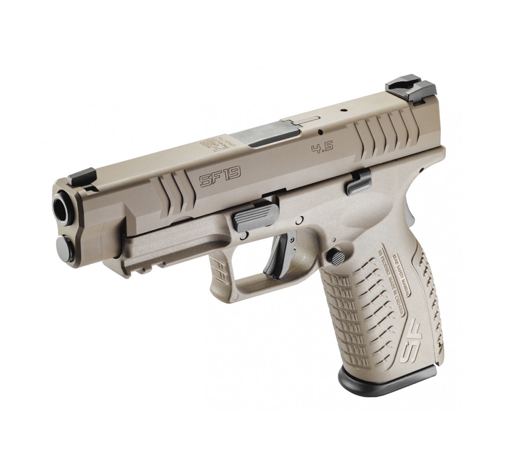 Pištoľ kal. 9×19 s dvojradovým zásobníkom. Cieľnik a muška sú stranovo nastaviteľné, vyrobené z ocele, so zúbkovaním zabraňujúcim oslneniu a zvýraznenými bielymi bodmi. HS SF19 4.5 AFDE disponuje dlaňovou poistkou, poistkou spúšte, poistkou úderníka, indikátorom náboja v komore a indikátorom polohy úderníka. Medzi ďalšie vlastnosti patrí obojstranný vypúšťač zásobníka i záchyt záveru, picatinny lišta, agresívne textúrovanie rukoväte, vymeniteľné chrbty rukoväte (3 veľkosti) a vylepšená spúšť s kratším resetom. Zväčšený lúčik spúšte umožňuje ľahkú manipuláciu aj pri používaní rukavíc. Pištoľ je dodávaná s tromi vysokokapacitnými zásobníkmi z nehrdzavejúcej ocele (19+1). (Nový model r. 2020)