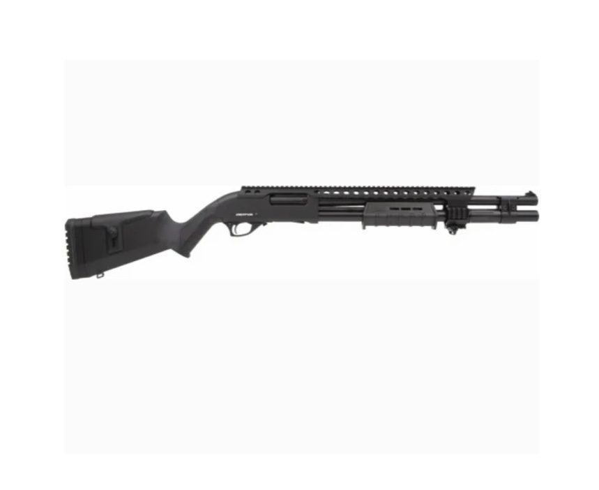 Derya CRT-401 predstavuje klasickú pumpovaciu brokovnicu v modernom vyhotovení, ktorá kombinuje jednoduchosť s vysokou funkčnosťou. Je ideálna na taktickú alebo rekreačnú streľbu, ako aj na sebaobranu. Pevná konštrukcia a intuitívne ovládanie z nej robia spoľahlivého spoločníka do každých podmienok. Kaliber 12/ 65-76, hlaveň 47cm, zásobník 6+1, váha 2.9kg.