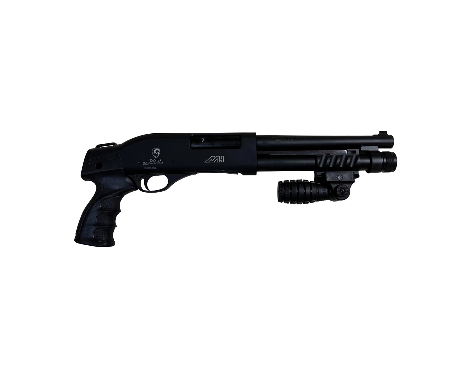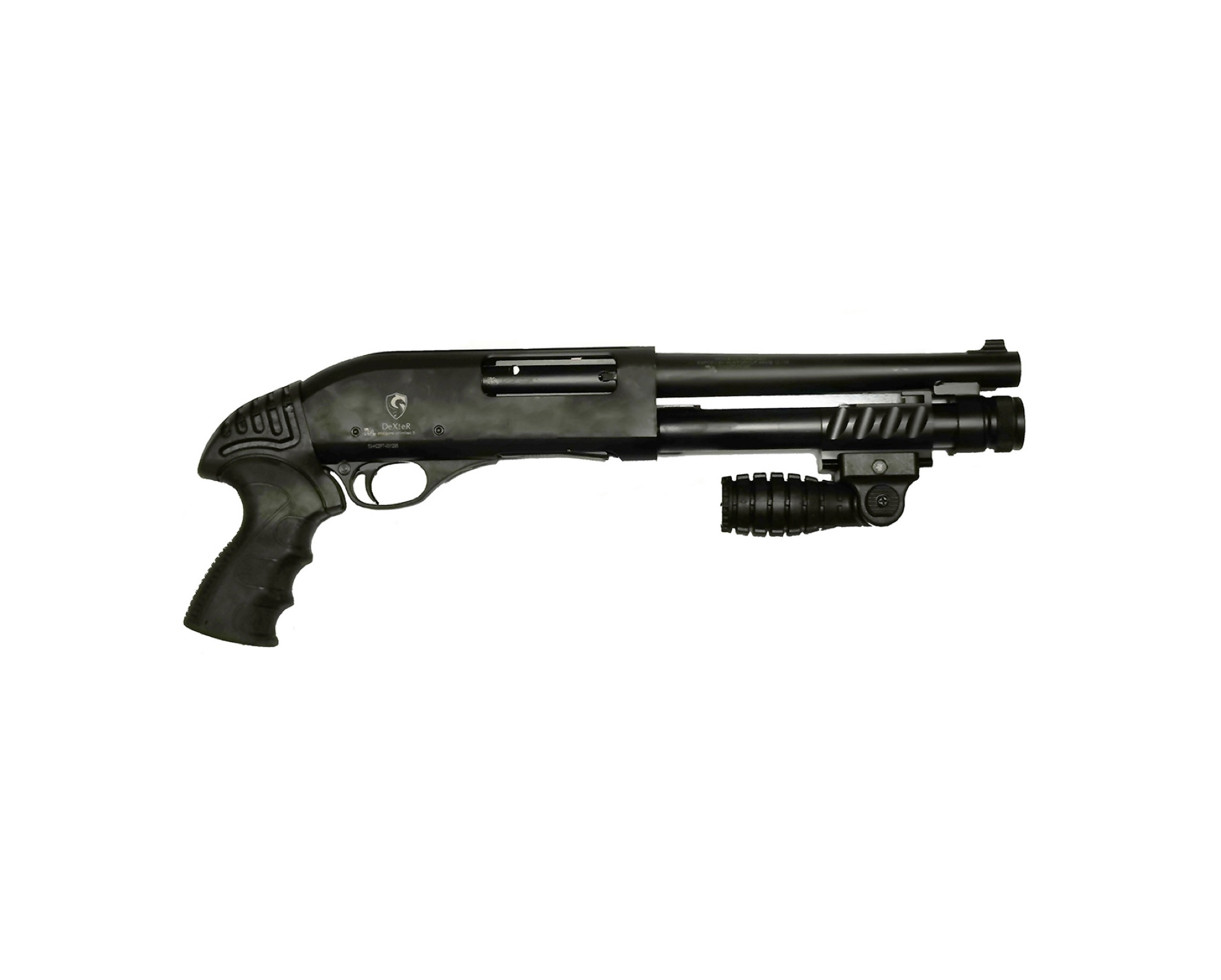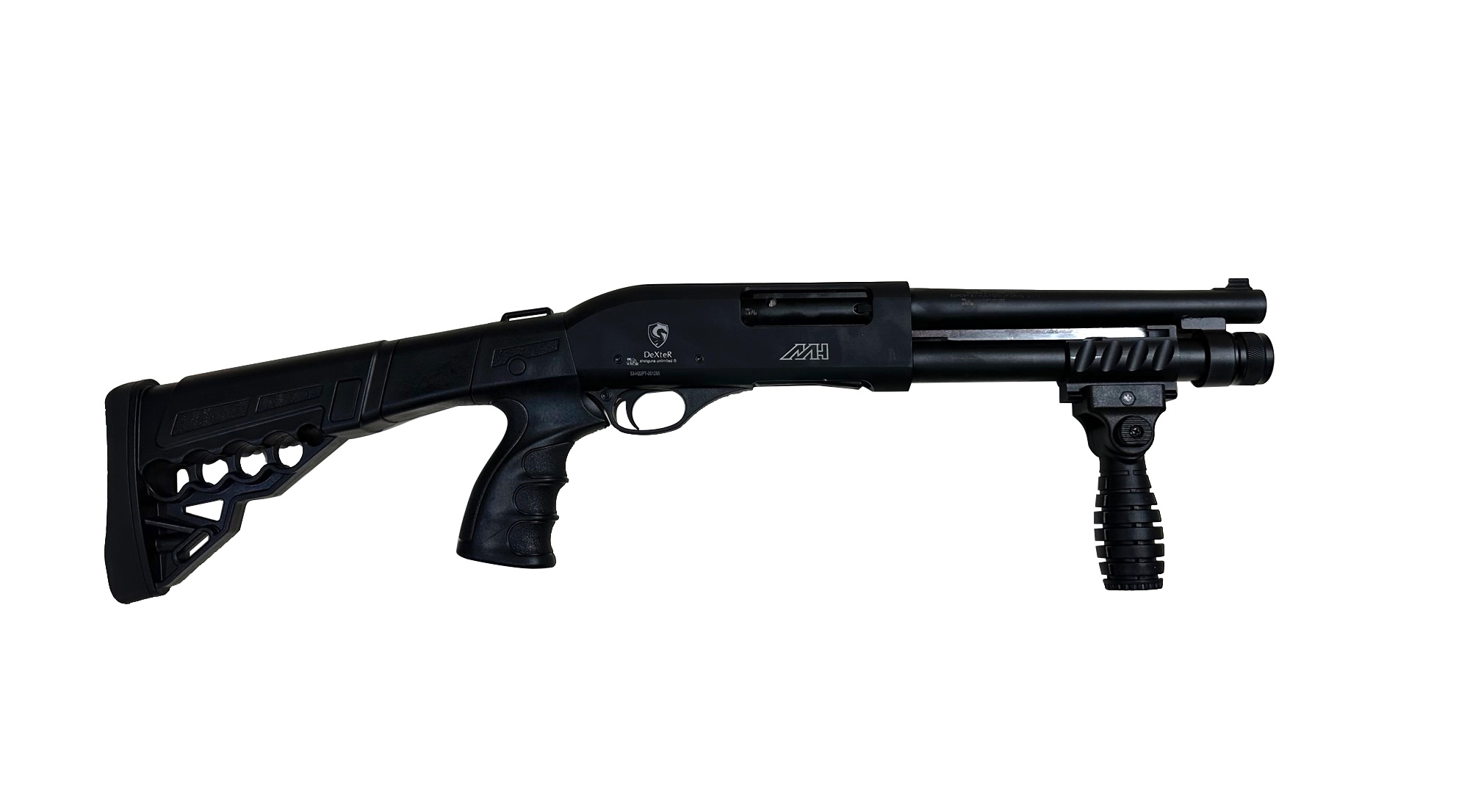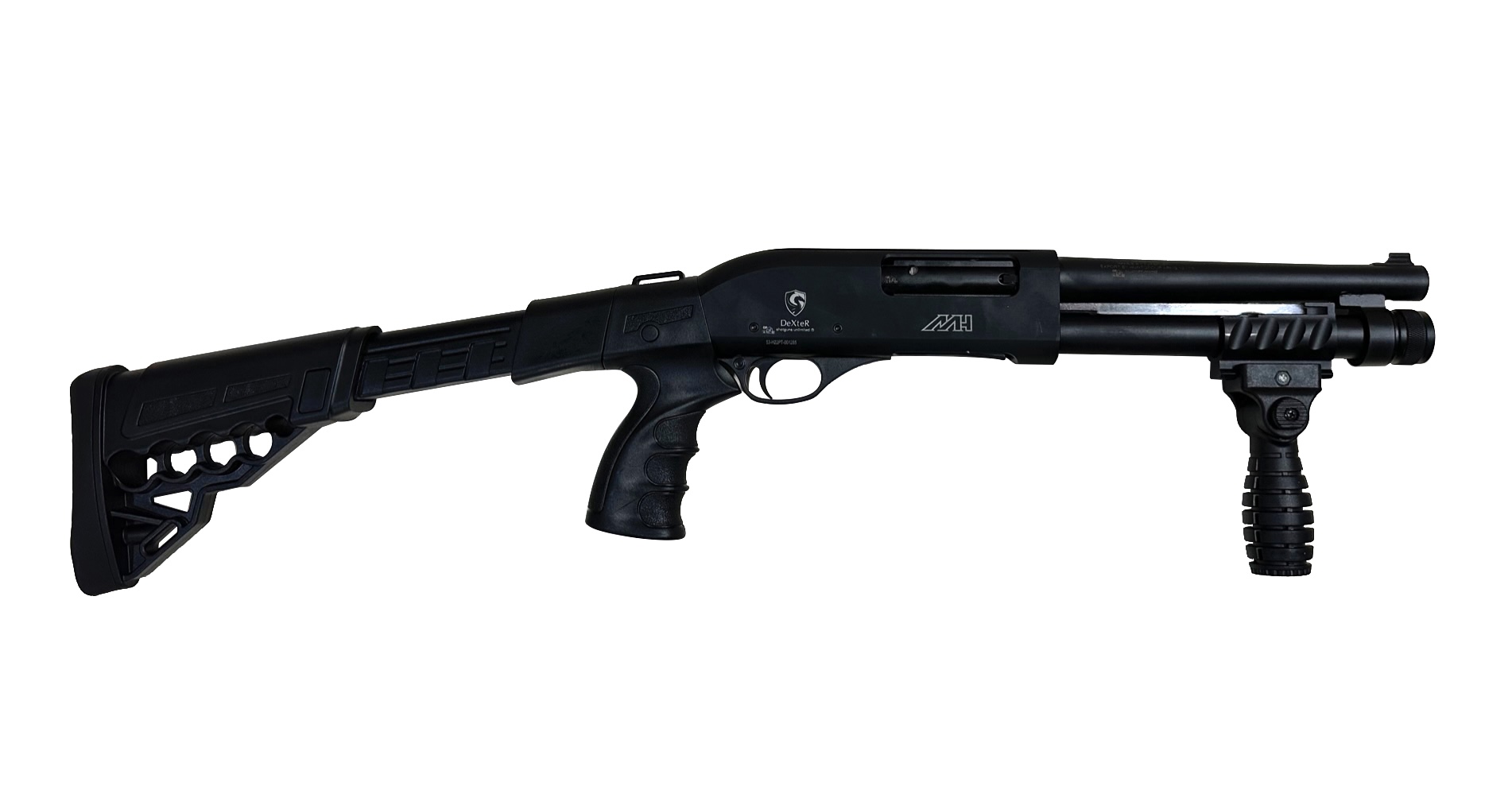 Možnosť kúpy na zbrojný preukaz sk.A!!! Extrémne krátka brokovnica s celkovou dĺžkou 49cm a hlavňou 23cm, podľa zákona spĺňa podmienky pre možnosť kúpy ako krátku zbraň. Kaliber 12/76, zásobník 3+1. Dĺžka s teleskopickou pažbou 69cm a s roztiahnutou: 79cm. Brokovnice edície DeXter sú robené na zákazku a musia spĺňať najvyššie požiadavky na kvalitu. Základ tvoria zbrane určené na Americký trh, ktoré my ďalej konfigurujeme podľa požiadaviek našich zákazníkov. Aktuálna už štvrtá generácia má vylepšené super-ergonomické predpažbie. Na púzdre záveru sa nachádza 11mm rail pre optiku. Nová je aj rúčka, ktorá má presnejšie spracovanie, takže pevnejšie sadne do ruky. Rúčku je možné meniť za teleskopickú pažbu bez pomoci náradia. Do pažba sa dajú vložiť 4 núdzové náboje.