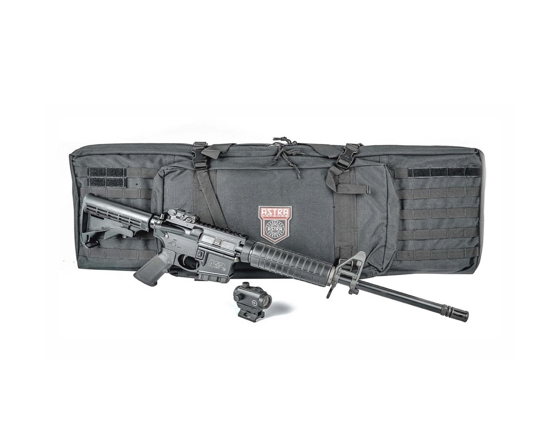 Rad pušiek „M&P“ je skratka pre „Military & Police“. To je záruka kvality, ktorú využíva polícia a armáda po celom svete. Pušky boli navrhnuté pre širokú škálu športového i profesionálneho využitia a sú kompatibilné so všetkými štandardnými doplnkami pre platformu AR15, v kalibri .223REM. M&P15 sú ľahké, robustné a dobre spracované. Táto konkrétne je navrhnutá pre všetkých fanúšikov klasického dizajnu M16, poprípade pre všetkých, ktorý si chcú zbraň upraviť totálne podľa seba. Hlaveň je 16″, so stúpaním 1:9. Teleskopická pažba sa nastavuje v 6-tich krokoch. Celková dĺžka 889mm. Váha 2.8kg. K puške dostanete navyše kvalitný kolimátor Crimson trace CTR-25 a robustnú veľkú tašku na prepravu od švajčiarskej značky Astra Defense v hodnote 250 euro, zadarmo.