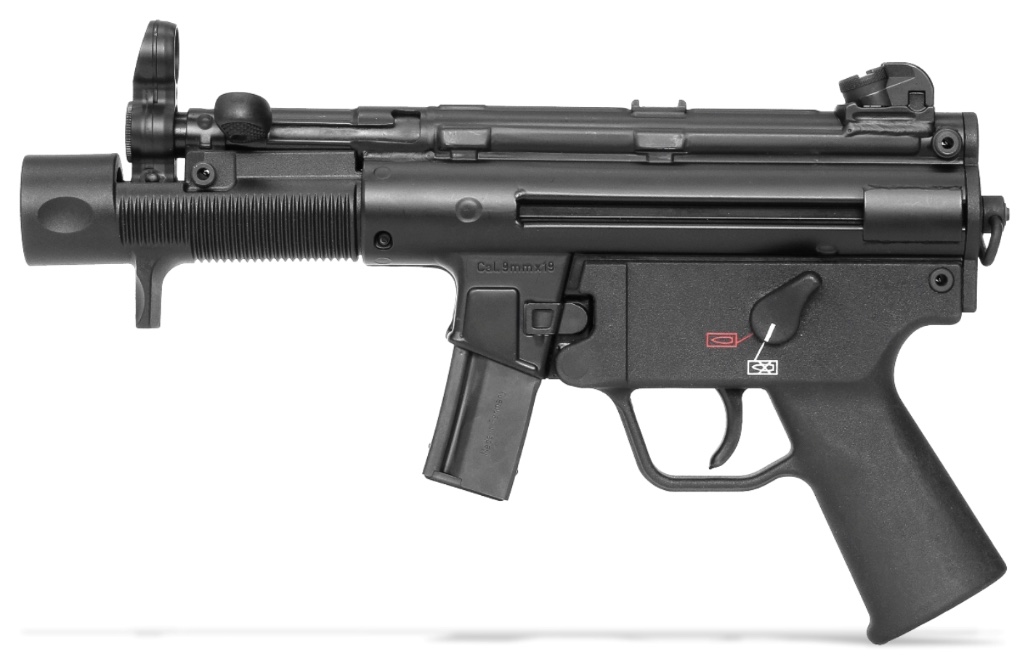 HK SP5K – samonabíjacia pištoľ, kal. 9×19, zásobník na 10 nábojov, obojstranná poistka, diopterové mieridlá, celková dĺžka 352 mm, dĺžka hlavne 115 mm, šírka 61 mm, výška 220 mm. SP5K je civilnou samonabíjacou verziou legendárnej MP5K v kalibri 9×19, ktorá bola vyvinutá v 70-tych rokoch ako zbraň na skryté nosenie pre účely osobnej ochrany. Okrem zmien vo vnútri zbrane, ktoré vyplývajú zo zákona, je SP5K absolútne identická s MP5K.