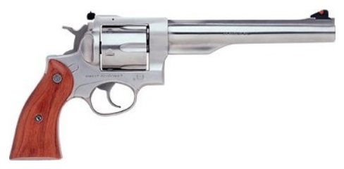 Revolver Ruger KRH-44, nerez, kal. .44RemMag., hlaveň 7,5″, celková dĺžka 33cm, hmotnosť 1530g, nastaviteľný cieľnik, pažbička drevená, 6 rán.