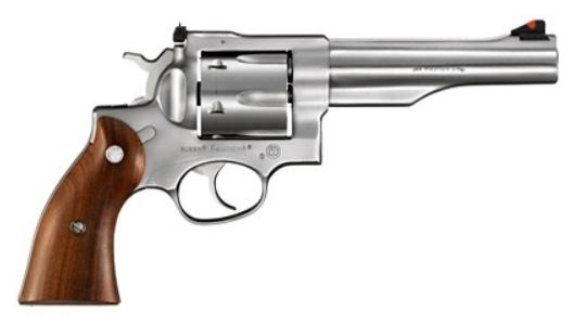 Revolver Ruger KRH-445, nerez, kal. .44Rem. Mag., hlaveň 5,5″ (14 cm), celkom 27,9 cm, hmotnosť 1,39 kg, nastaviteľné mieridlá, červená muška, kapacita 6 rán, dvojčinný.