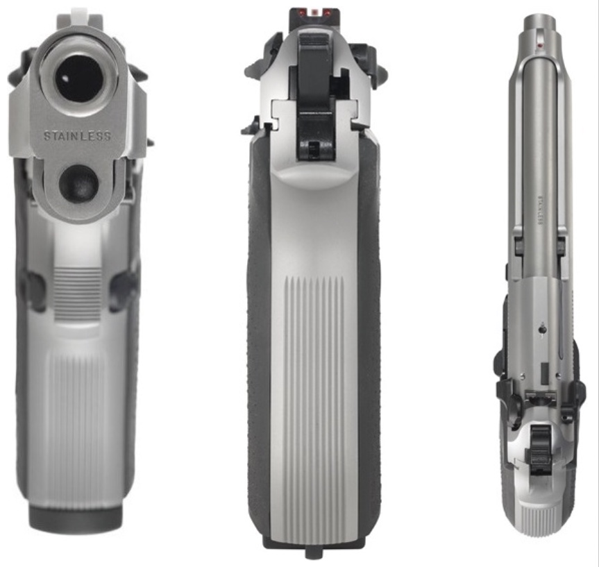 Nerezové prevedenie, kapacita zásobníka 15 nábojov, dĺžka hlavne 125 mm, celková dĺžka 217 mm, celková šírka 38 mm, spúšťový mechanizmus SA/DA. V balení dva zásobníky. Vyrobené v Beretta USA Corp., Maryland, USA.