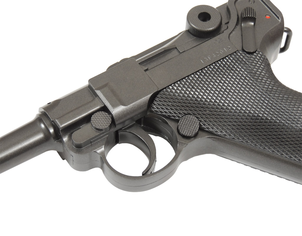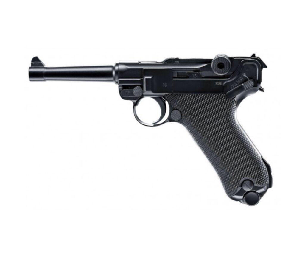 Je to verná replika svetovo známej zbrane Parabellum P08, používanej predovšetkým v 2. svetovej vojne nemeckým vojskom, ktorá je vyrábaná popredným výrobcom vzduchových a airsoftových zbraní Umarex. Pištoľ nesie verné rysy a dizajn už spomínanej P08, charakterizuje ju aj veľmi kvalitné celokovové spracovanie. Zásobník má kapacitu až 21 oceľových BBs brokov kalibru 4,5 mm. Pažbičky sú z plastového materiálu. Bombička sa vkladá pod pažbičku.
