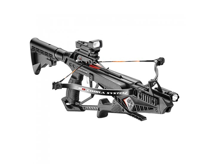 Rýchly strelec manipulujúci touto karabínovou kušou používa integrálnu (napínaciu) páku. Silový náťah Cobry R9 v dĺžke 7,5“ (19.05 cm) s výstrelom vyhradeným 130 grainovým 7,5“ karbónovým šípom s úsťovou rýchlosťou 240 fps, takmer dvojitá kinetická energia tradičného pištoľového šípu!