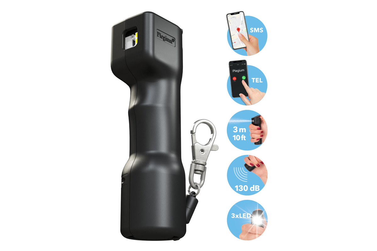 Inovatívny slzný sprej, ktorý v sebe skrýva 5 základných funkcií – 1. slzný sprej s dostrekom až 3 metre a označovacou UV látkou, 2. ohlušujúci alarm so silou až 130dB, 3. tri stroboskopické lampy, ktoré dezorientujú útočníka a zároveň osvietia široké okolie, 4. zariadenie zavolá 5 prednastavených telefónnych čísiel a pošle správu, že máte problém, 5. zariadenie pošle na 5 prednastavených čísiel google mapu s vašimi koordinátmi. Toto všetko sa aktivuje jedným stlačením hlavného tlačidla na SMART spreji. Zariadenie sa pripája k telefónu pomocou bluetooth, nepotrebuje samostatnú SIM kartu. Batéria vydrží na jedno nabitie 4 roky.