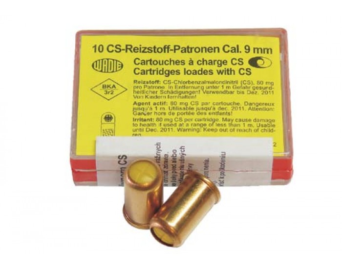 Slzotvorné obranné náboje značky Umarex s obsahom dráždivej látky CS (chlorbenzalmlondinitril) pre plynové (expanzné) zbrane v kal. 9 mm. Jeden náboj obsahuje 80 mg tejto účinnej dráždivej látky. Náboje s účinnou látkou CS nemusia účinkovať na zvieratá. Ak hľadáte náboje účinné aj na zvieratá, odporúčame prezrieť si našu ponuku slzotvorných nábojov s obsahom látky OC / Nonivamid. Balenie obsahuje 10 ks nábojov. Dosah slzotvorných nábojov po vystrelení je cca 3 až 5 metrov.