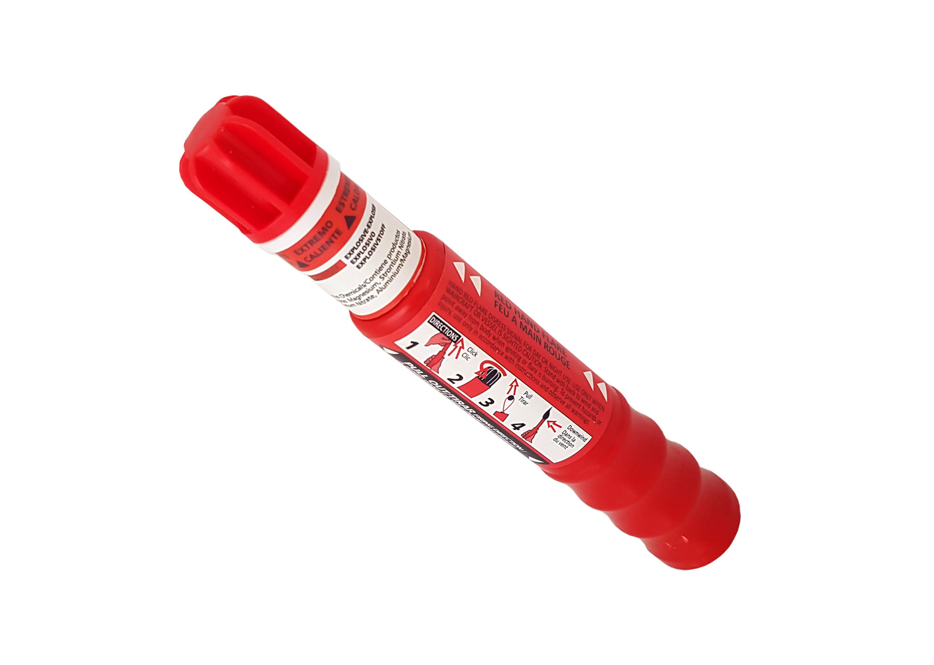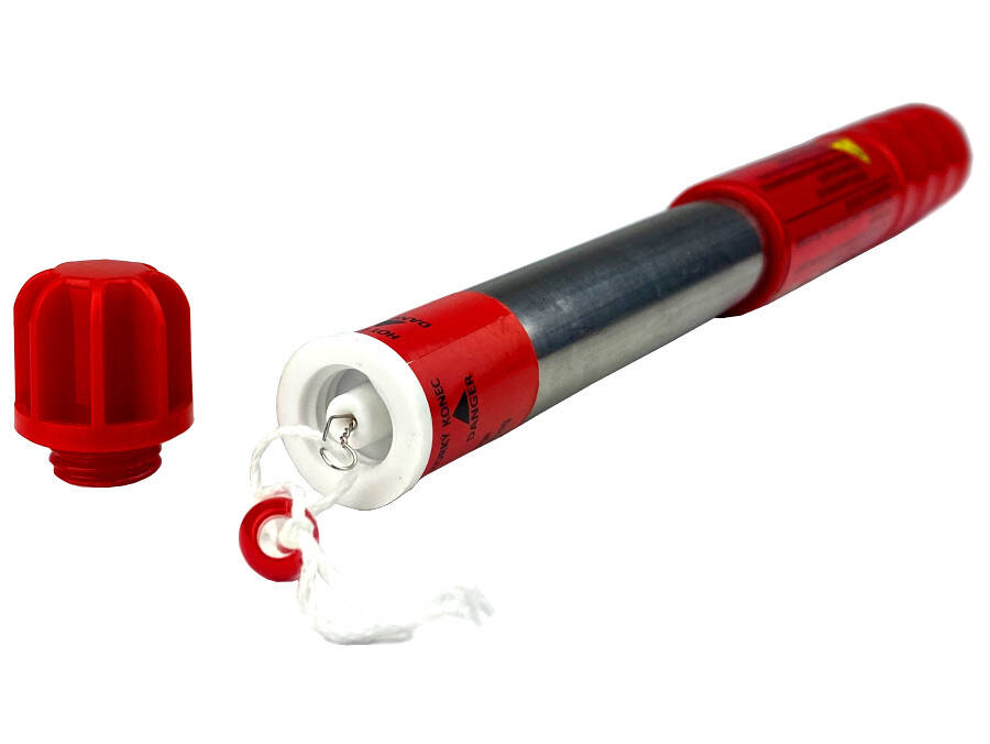 Extra silný žiarivý červený plameň. Odpálenie – trecí zapaľovač.