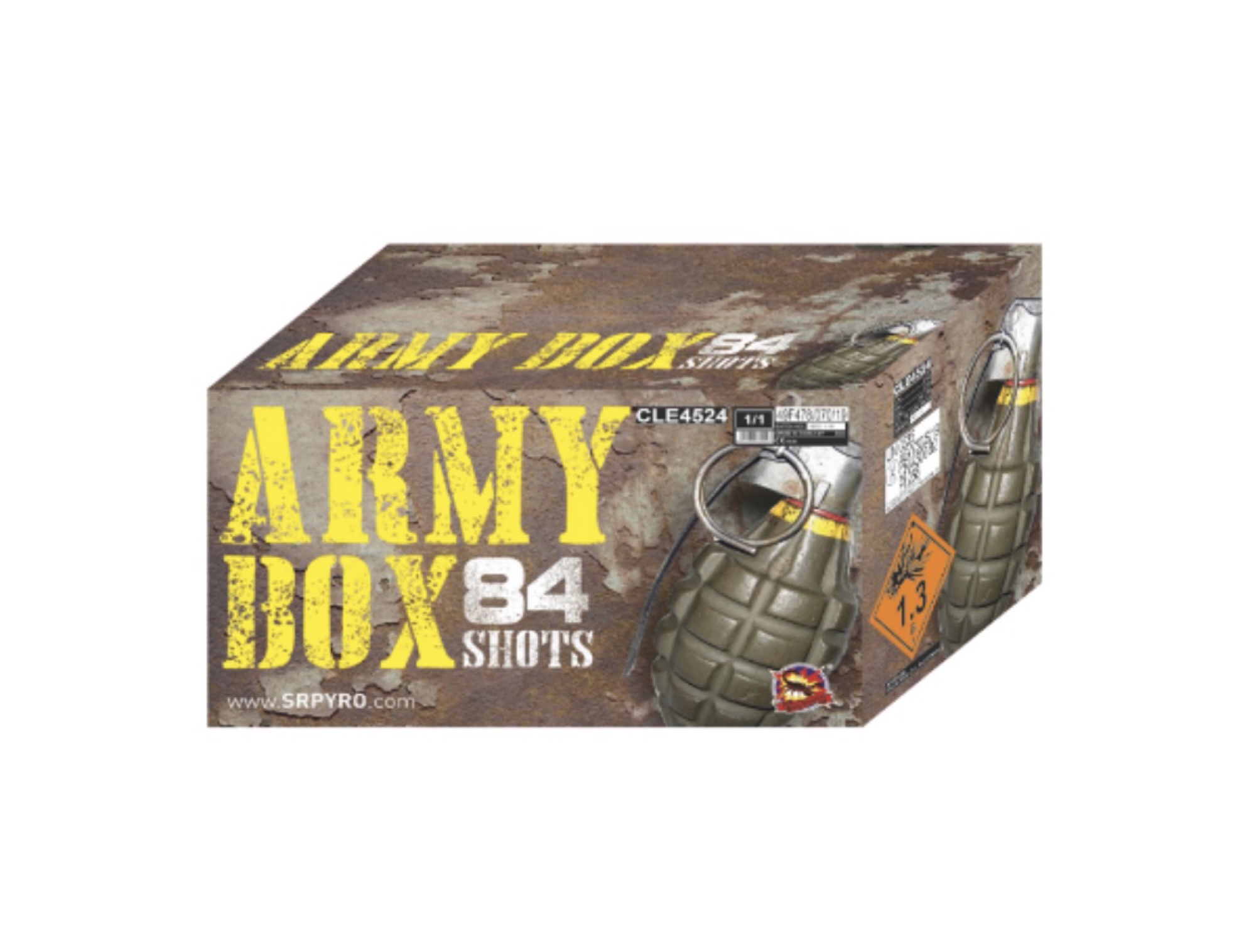 Kompaktný ohňostroj Army box je sprevádzaný rôznymi viacfarebnými efektami. Tento ohňostroj vypáli do vzduchu 84 rán ráže 30-48 mm a celá show trvá cca. 140 sekúnd.