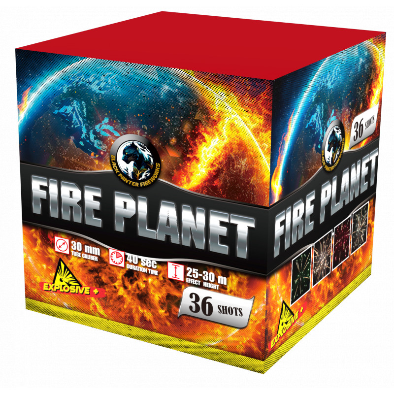 Kompaktný ohňostroj Fire planet 36 rán 30mm je sprevádzaný rôznymi viacfarebnými efektami. Tento ohňostroj vypáli do vzduchu 35 rán ráže 30mm.