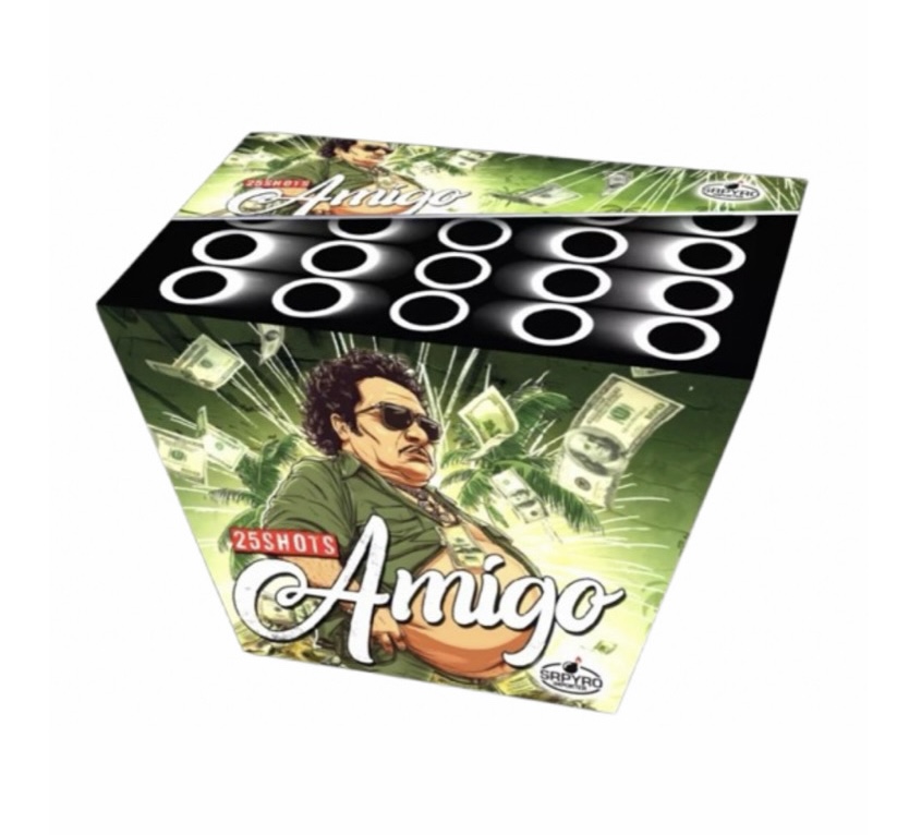 Kompaktný ohňostroj Amigo je sprevádzaný rôznymi viacfarebnými efektami. Tento ohňostroj vypáli do vzduchu 25 rán ráže 30mm s dĺžkou efektu cca 25 sekúnd.