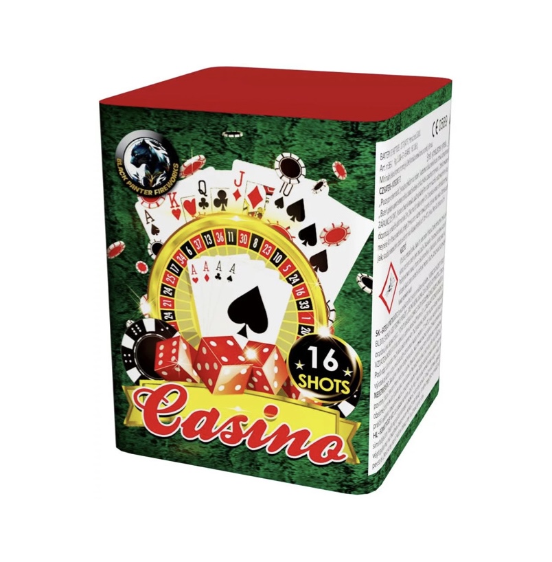 Kompaktný ohňostroj Casino je sprevádzaný rôznymi viacfarebnými efektami. Tento ohňostroj vypáli do vzduchu 16 rán ráže 20 mm a celá show trvá cca. 40 sekúnd.
