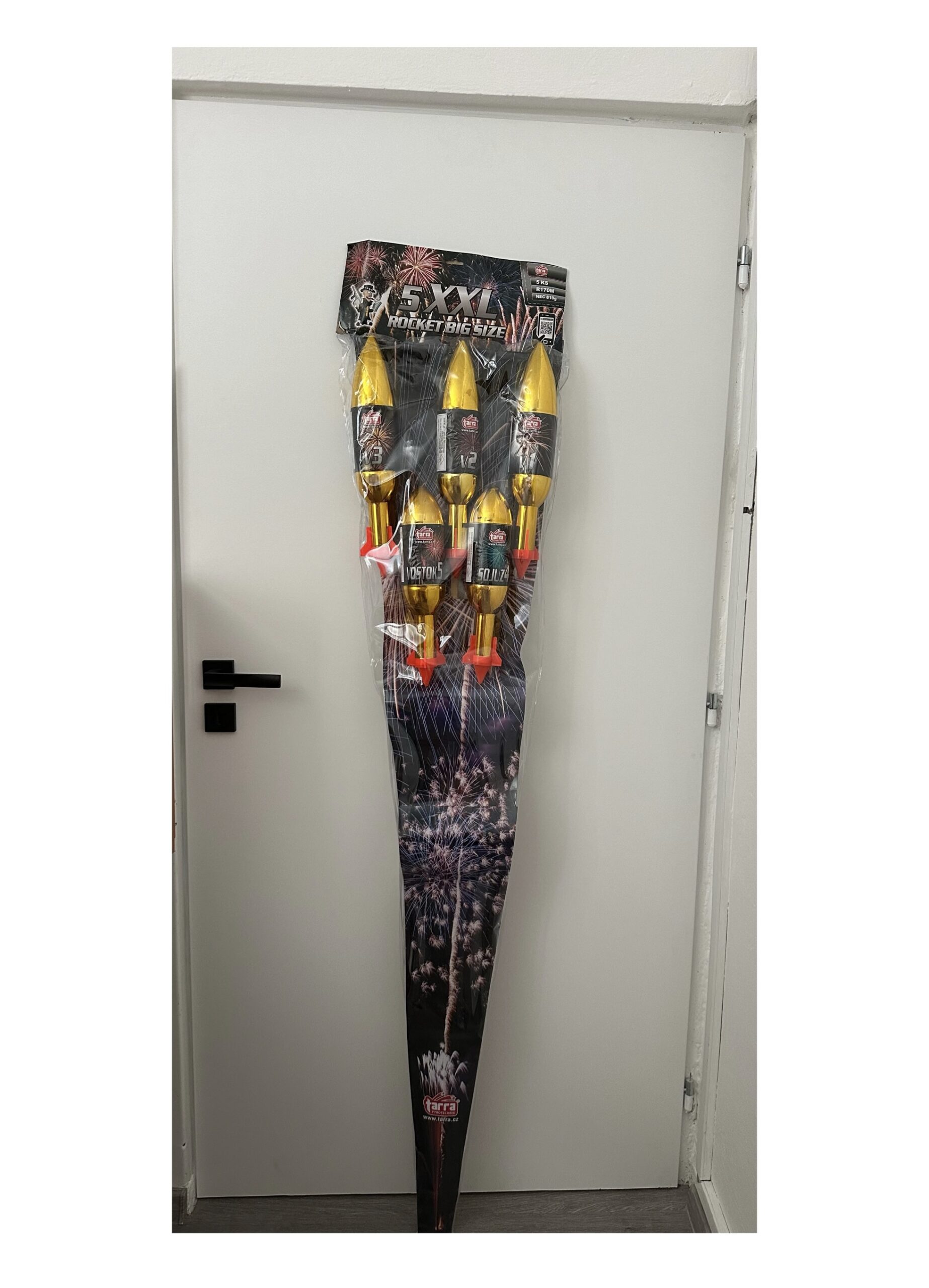 Gigantický s set rakiet 5XXL ROCKET je sada 5 kusov obrovských rakiet s rôznofarebným efektom.